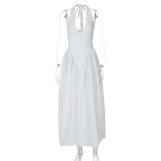 Chains Ornament Halter Swing Midi Dress