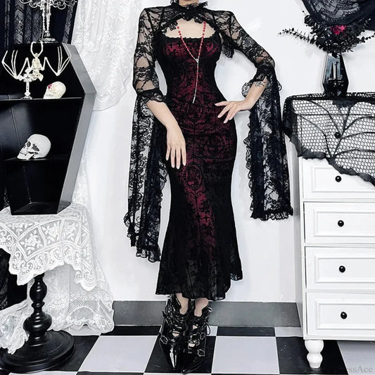 Gloomy Lace Fishtail Tiny Slim Midi Dress
