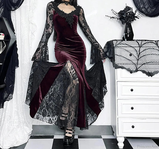 Halloween Lace Patchwork Corset Midi Dress