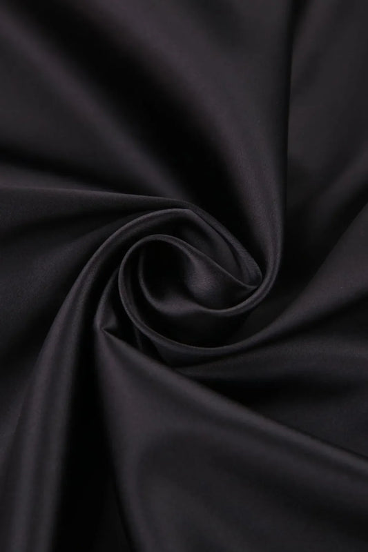 Perly Black Mock Neck Tie Back Satin Mini Dress