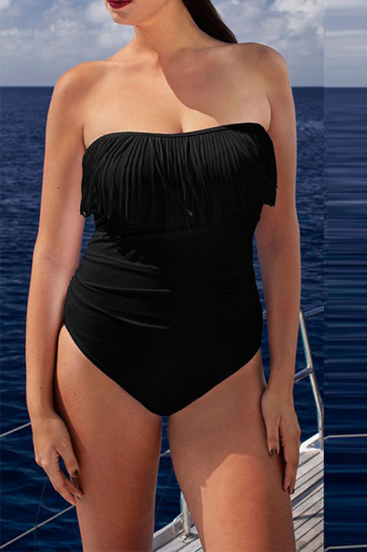 Casual Solid Flounce Swimwears