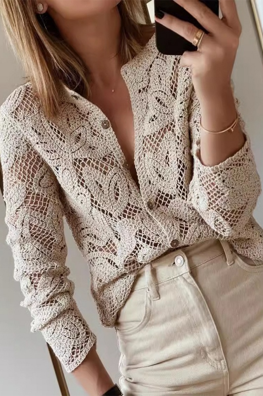 Casual Lace Hollow Out Distressed V Neck Outerwear