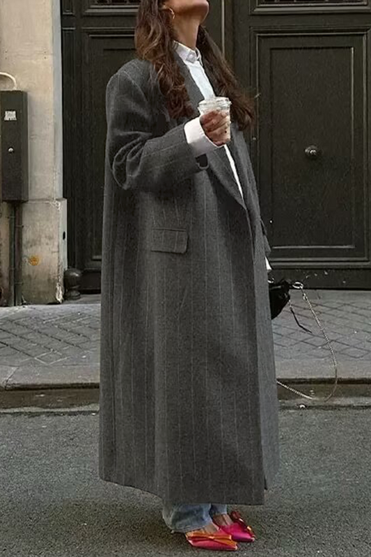Casual Stripe Pocket Patchwork Turndown Collar Outerwear