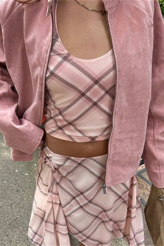 Candlestick Print Plaid Ruched Stand Collar Coat