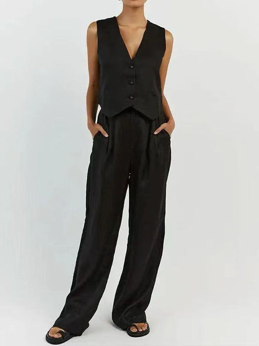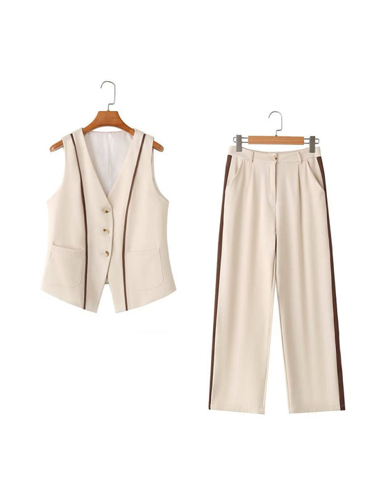 Waist Coat Vest & Wide Leg Pants Coord Set