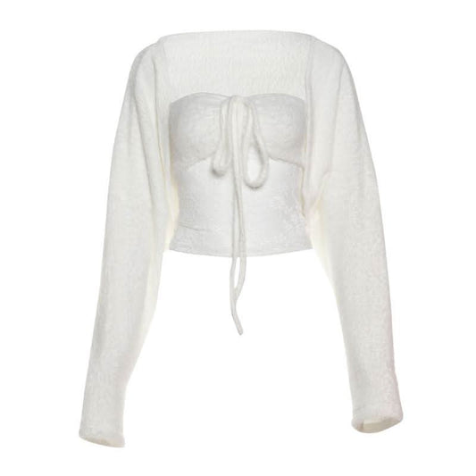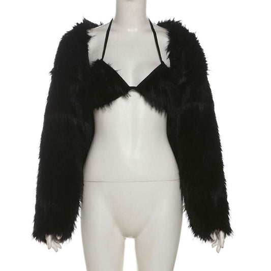 Long sleeve halter fluffy 2 piece coat top