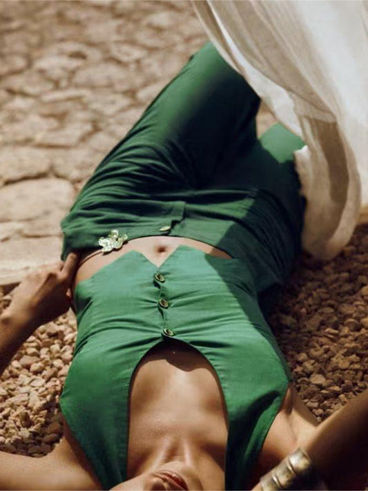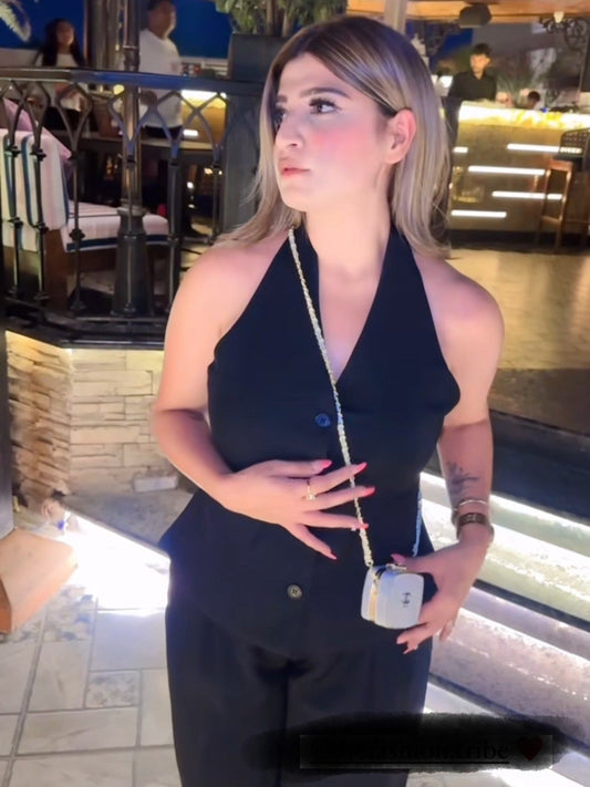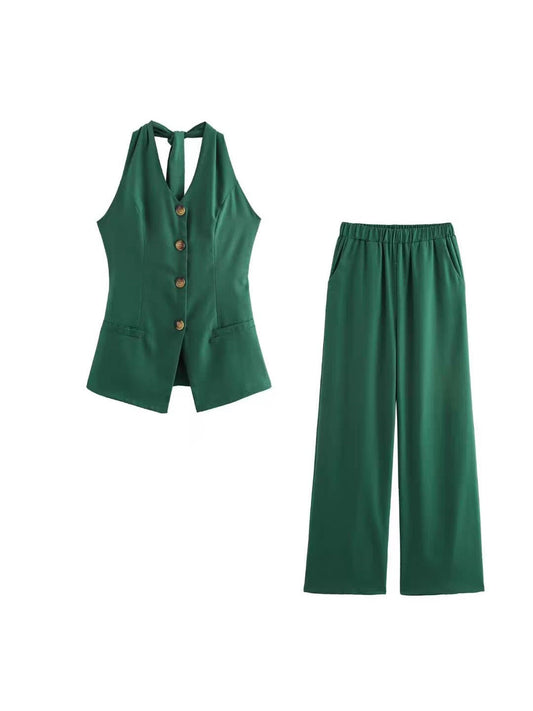 Halterneck Vest Waist Coat & Wide Leg Pants Coord Set