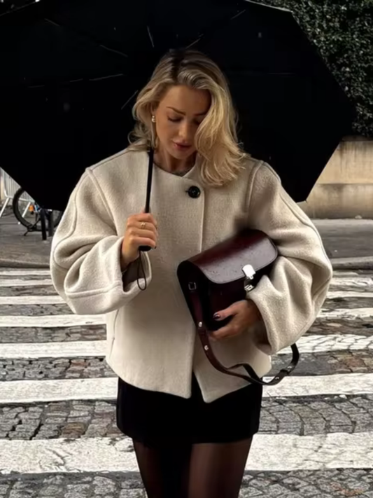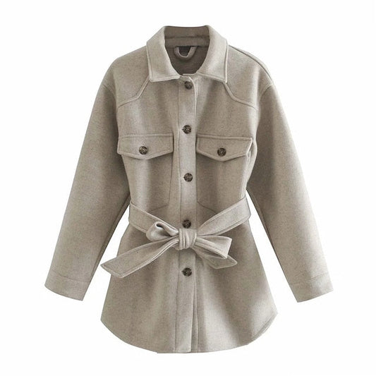 Wool Blend Lapel Double Breasted Long Sleeve Coat