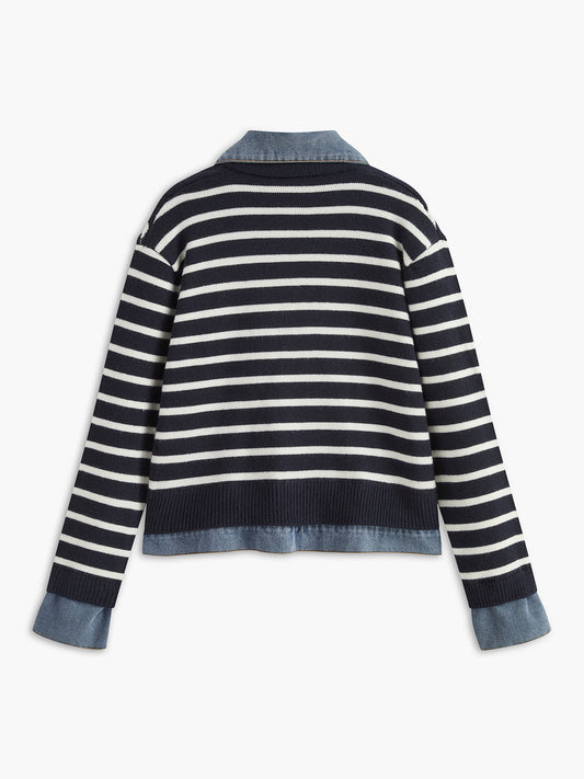 Contrast Collar Piping Denim Jacket