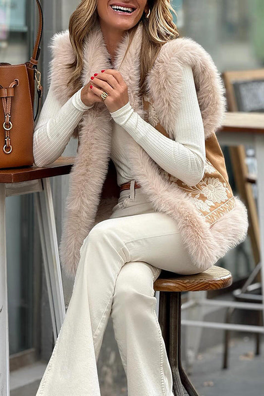 Plush embroidered cardigan vest