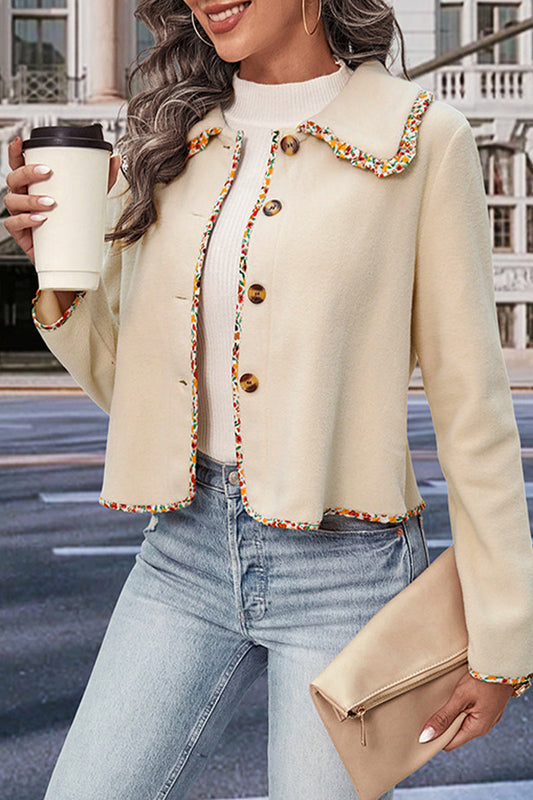 Fashion Solid Patchwork Cardigan Collar Outerwear
