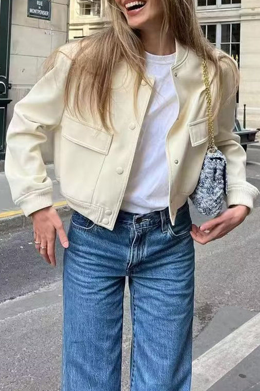 Casual Daily Solid Color Buttons Turn-back Collar Outerwear