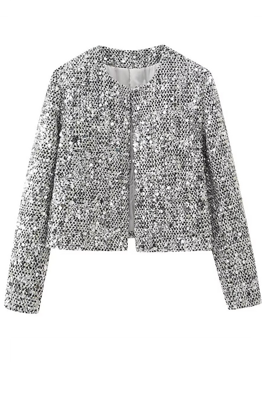 Casual Solid Color Sequins Patchwork O Neck Outerwear