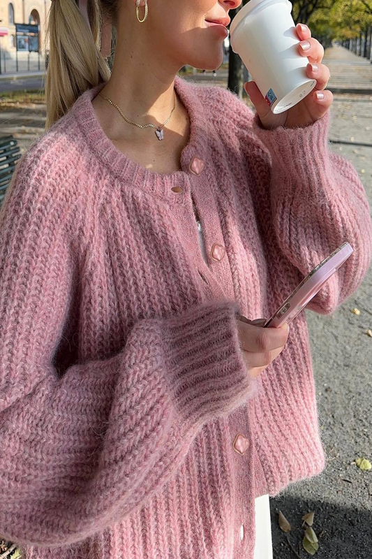 Casual Buttons Weave O Neck Outerwear(4 Colors)