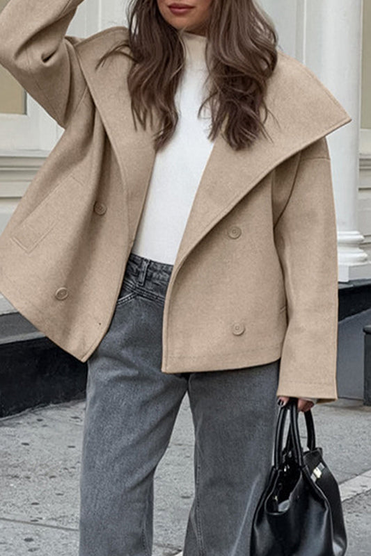 Daily Elegant Solid Color Pocket Turndown Collar Outerwear