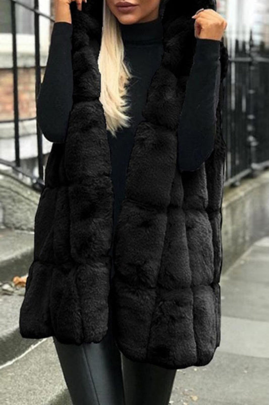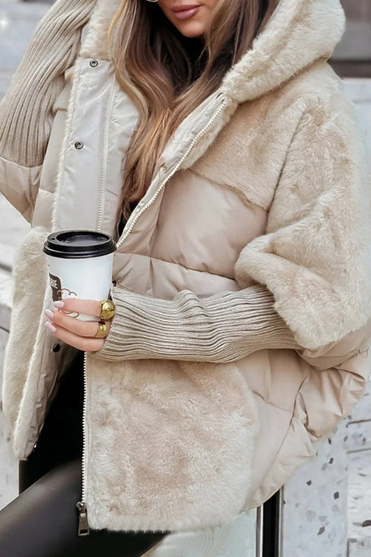 Casual Solid Patchwork Hooded Collar Outerwear(3 Colors)