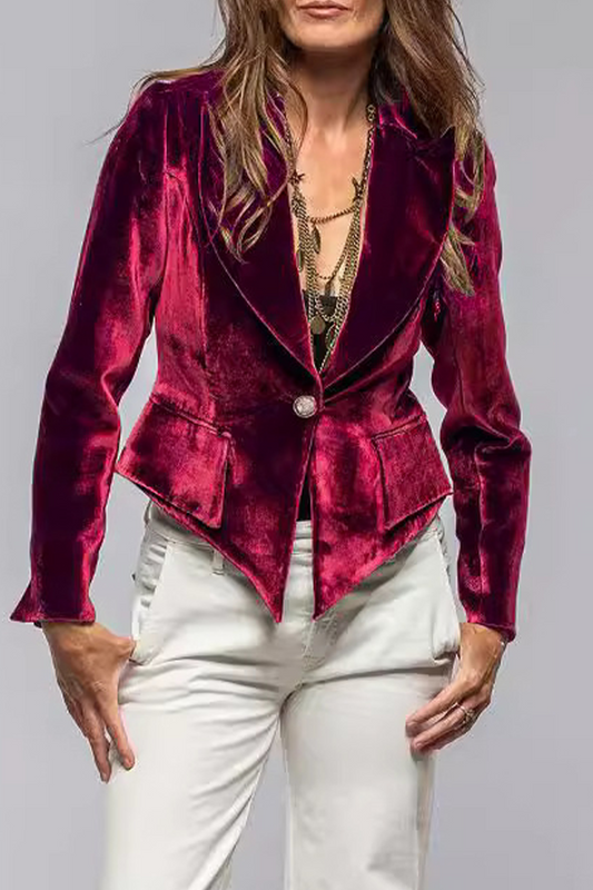 Casual Buttons Slit Velvet Turn-back Collar Outerwear(4 Colors)