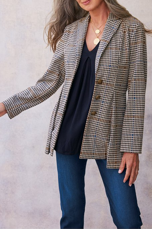 Elegant Plaid Buckle Turn-back Collar Outerwear