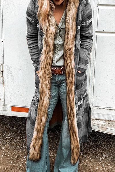 Casual Print Split Joint Buttons Turndown Collar Outerwear