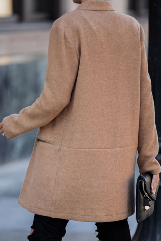 Fashion Elegant Solid Pocket Buckle Turn-back Collar Outerwear