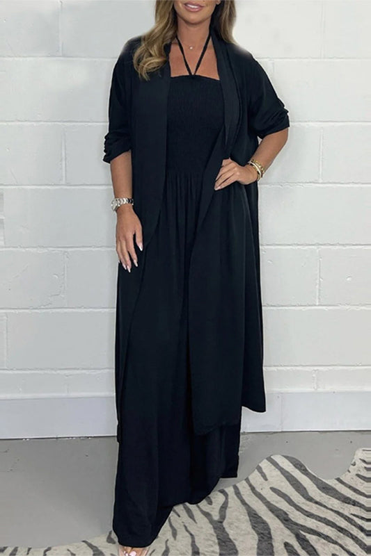 Elegant Simplicity Solid Patchwork Backless Halter Two Pieces(Jumpsuits, jackets)