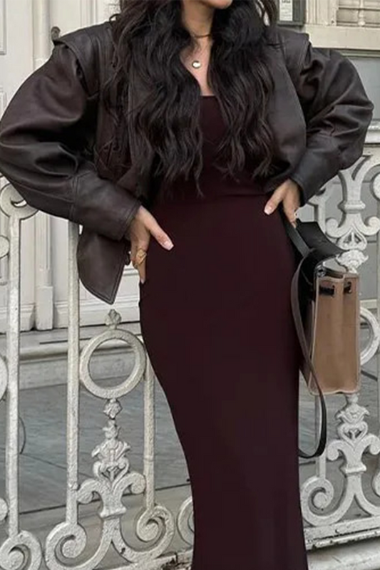 Casual Street Solid Color Lace Up Patchwork Turndown Collar Outerwear