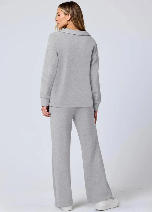 Relaxed Collar Pullover & Wide-Leg Pants Set