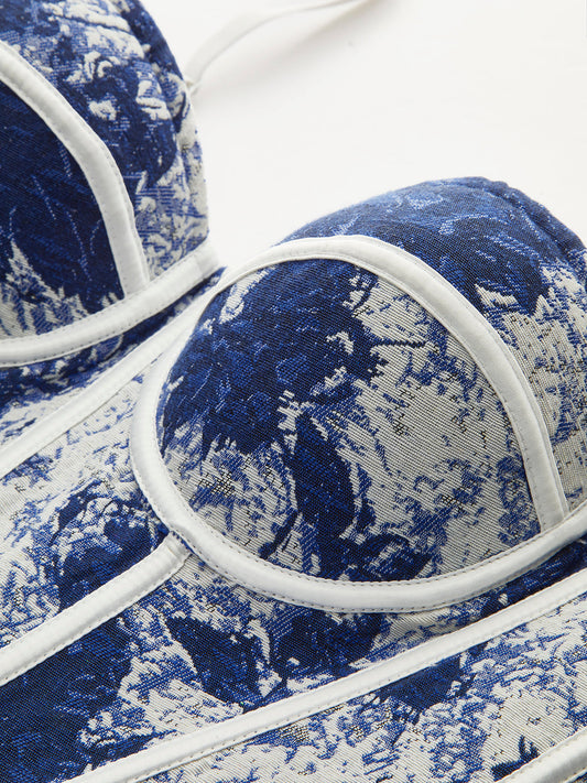 Semi-Sheer Spaghetti Strap Piping Corset Top