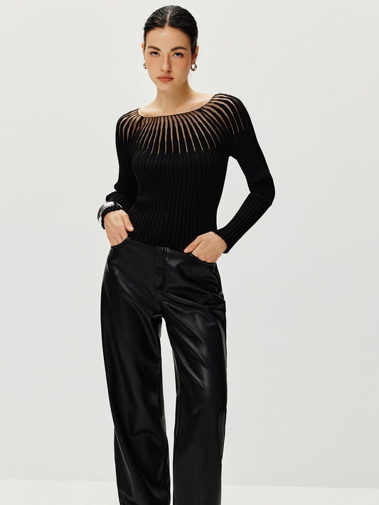 Ribbed Hollow Sweater