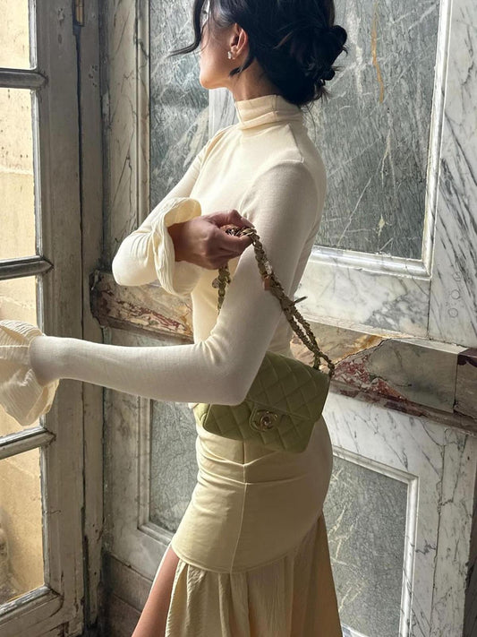 Turtleneck Ribbed Ruffle Sleeve T-Shirt