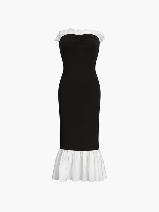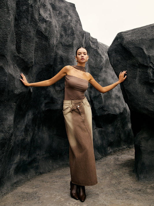 Cotton & Linen Asymmetrical Neck One Shoulder Off Short Dress