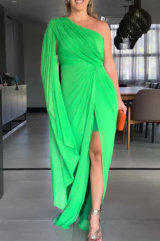 Elegant Solid Flounce Slit Evening Dress Dresses