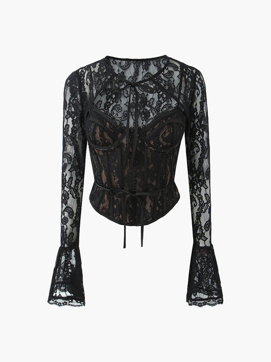 Semi-Sheer Sweetheart Neck Lace Tie Top