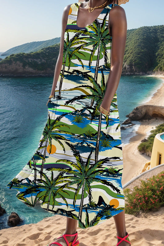 Plus Size Casual Vacation Print Patchwork Oblique Collar Irregular Dress Dresses