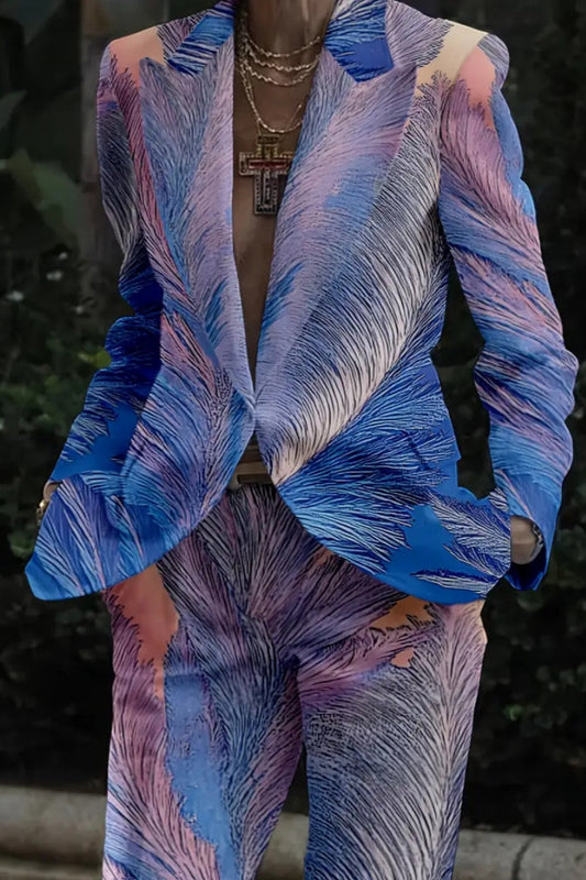 Casual Print Buttons Turn-back Collar Long Sleeve Two Pieces(3 Colors)