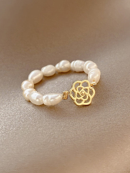 Simple Irregular Water Ripple Highlight Adjustable Pearl Ring