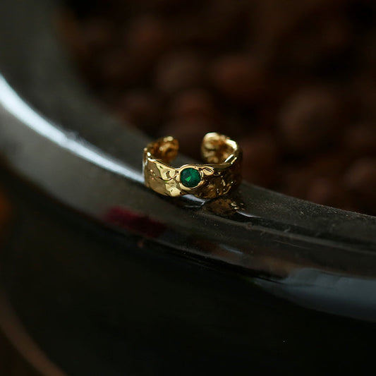 Vintage Emerald Textured Zircon Inlaid Lava Open-end Ring