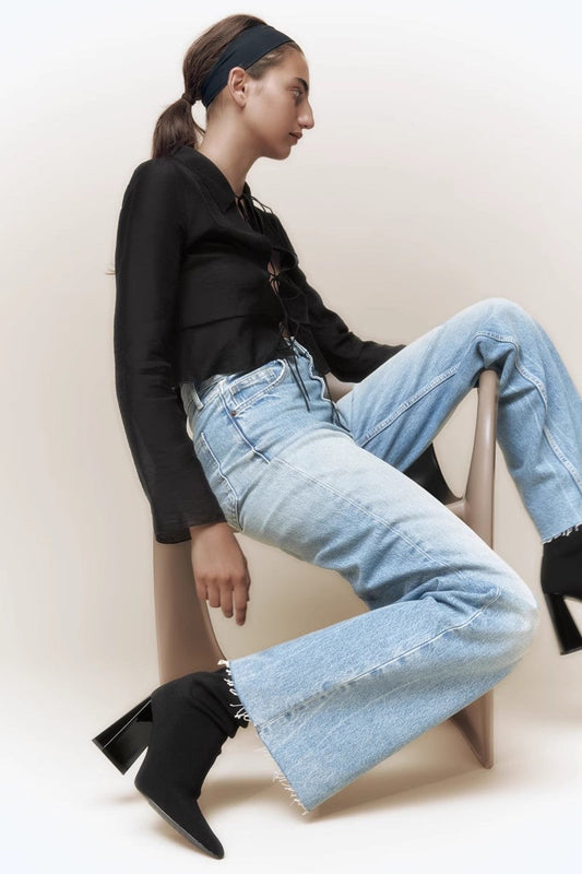 Maeve Stripe Mesh Sock Thigh-high Boots - Black