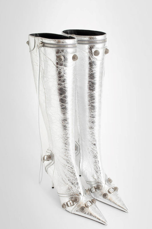 Isabela Appliqué Ruched Denim Knee-high boots - Blue
