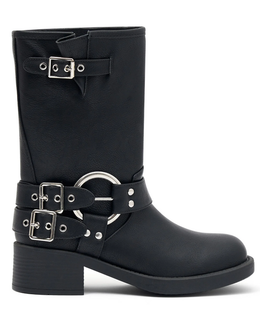 Danika Chunky Heel Metallic Trouser Boots - Black