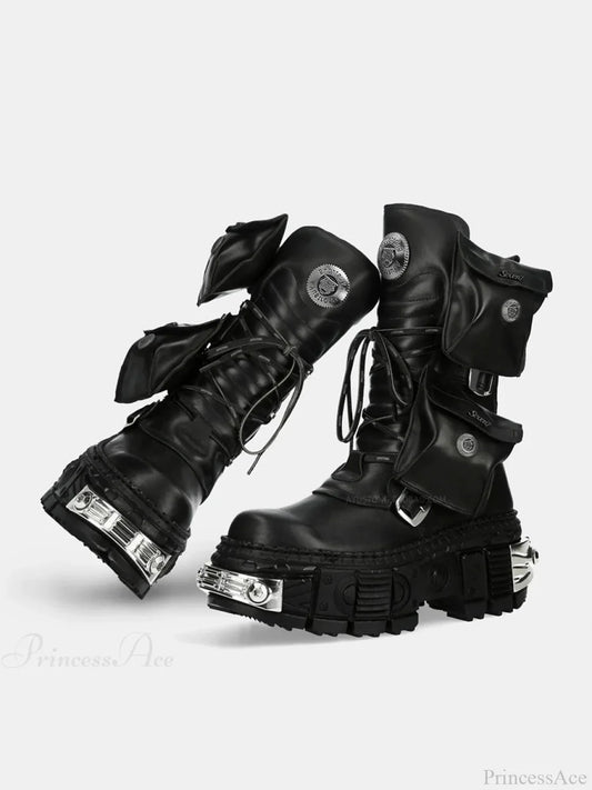Dark Platform Motorcycle Rivet Battle Gothic Boot