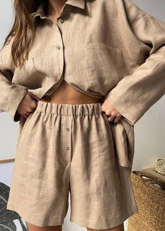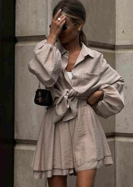 Noelle Beige Set – Button-Down Shirt & Drawstring Shorts