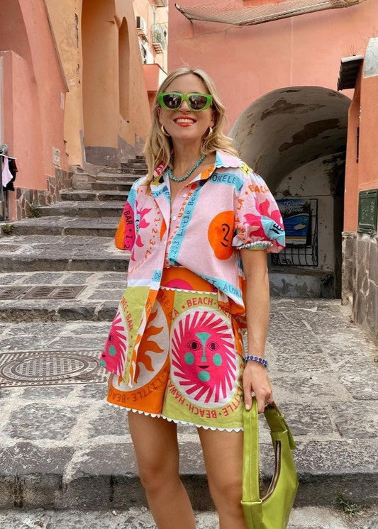 Viva Solare - Graphic Sun Print Puff Sleeve Set