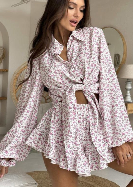 Wild Bloom - Floral Puff Sleeve Shirt and Shorts Set
