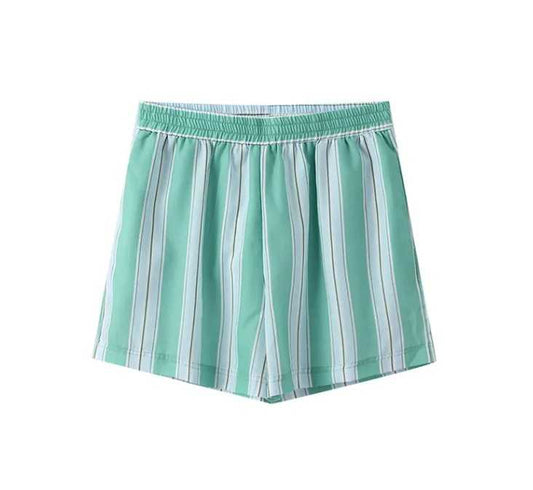 Lantern Sleeve Stripe Shirt Shorts Sets