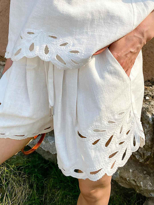 Cherry Pop - Eyelet Crop Top & Flowy Shorts Set