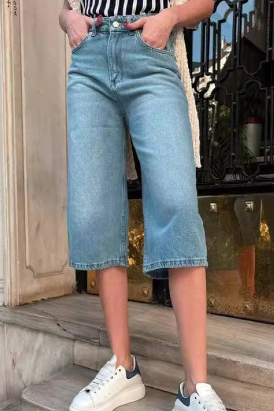 High Waist Denim Shorts with Pockets