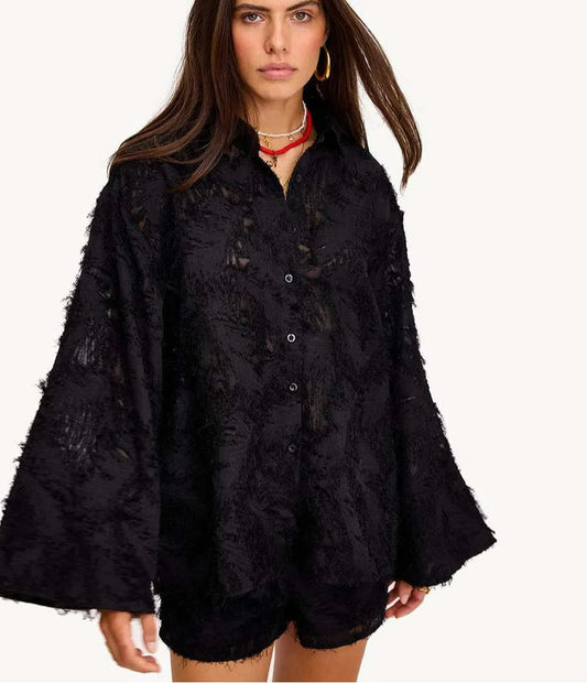 Black Knitting Loose Pockets Shorts Office Two Piece Set