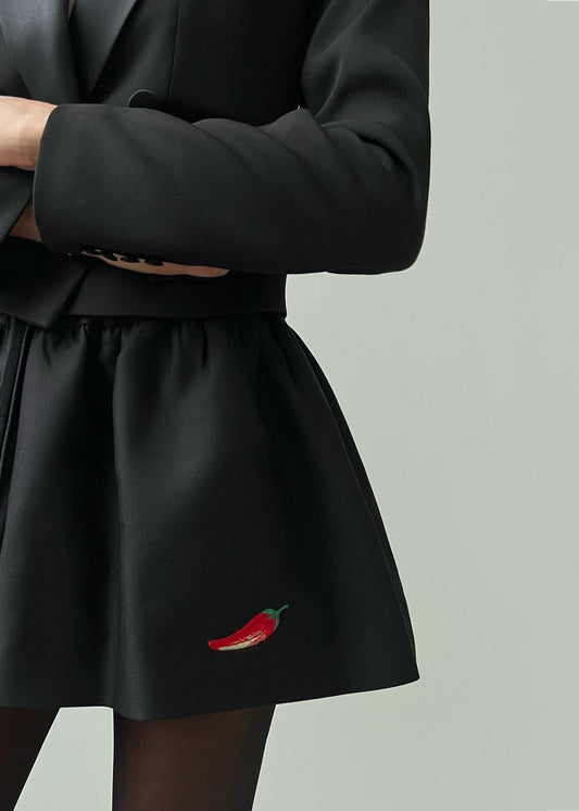 Cropped Tuxedo Blazer & Drawstring Mini Skirt Set