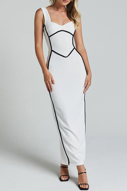 Sexy Vintage Gradual Change Backless Contrast V Neck One Step Skirt Dresses
